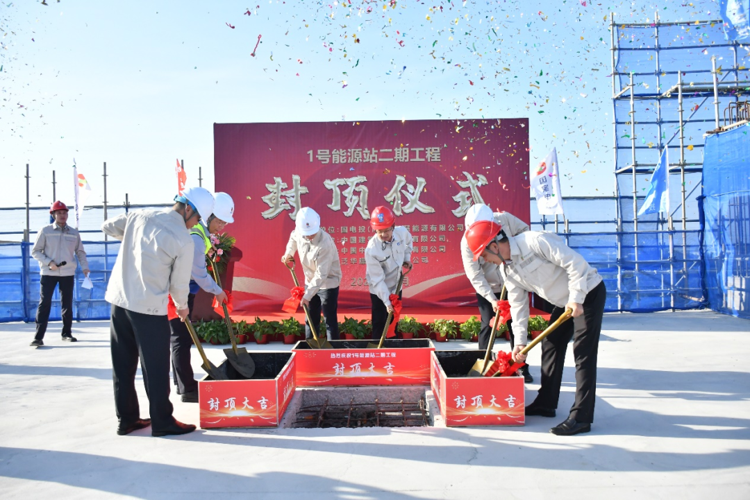 會(huì)后雙方主要負(fù)責(zé)人出席并見(jiàn)證海南陵水綜合智慧能源項(xiàng)目1號(hào)能源站二期工程項(xiàng)目主體結(jié)構(gòu)封頂儀式。