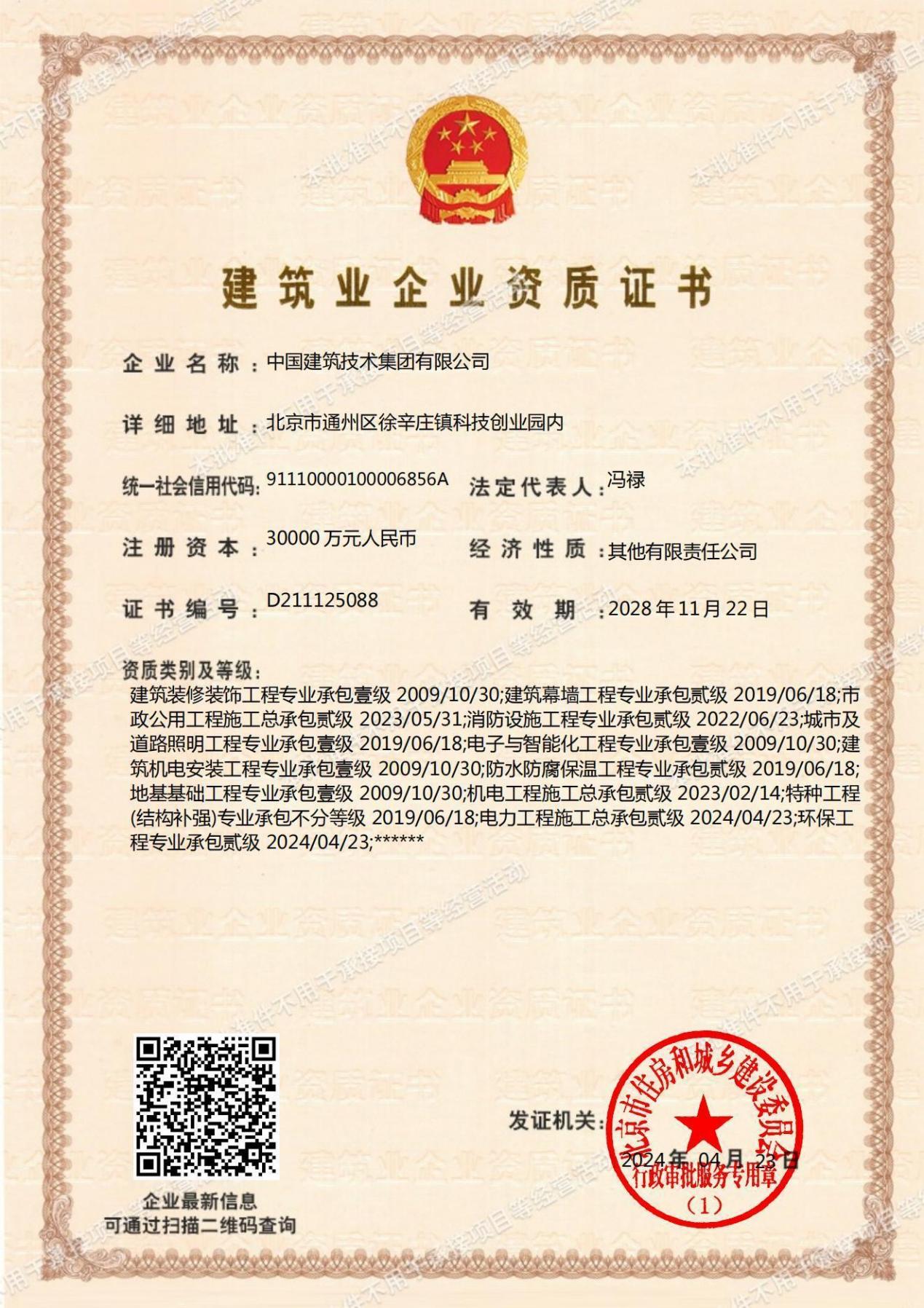 近年來,中國建技致力于完善資質(zhì)平臺(tái)建設(shè),形成了覆蓋規(guī)劃、勘察、設(shè)計(jì)、施工、監(jiān)理、咨詢、檢測與服務(wù)等領(lǐng)域的全產(chǎn)業(yè)鏈資質(zhì)矩陣。勘察設(shè)計(jì)領(lǐng)域,擁有工程勘察專業(yè)類(巖土工程)甲級(jí)、建筑行業(yè)(建筑工程)甲級(jí)、風(fēng)景園林工程設(shè)計(jì)專項(xiàng)甲級(jí)、城鄉(xiāng)規(guī)劃編制甲級(jí)、土地規(guī)劃乙級(jí)、測繪工程測量乙級(jí)、勞務(wù)類(工程鉆探)乙級(jí)等多項(xiàng)資質(zhì);工程施工領(lǐng)域,擁有建筑工程施工壹級(jí)、市政公用工程貳級(jí)、機(jī)電工程施工貳級(jí)、電力工程施工貳級(jí)四項(xiàng)總承包資質(zhì);鋼結(jié)構(gòu)、地基基礎(chǔ)、裝修裝飾、機(jī)電安裝、道路照明、電子與智能化等專業(yè)承包壹級(jí)資質(zhì);建筑幕墻、消防設(shè)施、防水防腐保溫等專業(yè)承包貳級(jí)資質(zhì);工程監(jiān)理領(lǐng)域,具備屋建筑工程監(jiān)理甲級(jí)資質(zhì),開創(chuàng)了以科研引領(lǐng)、設(shè)計(jì)助力、施工驅(qū)動(dòng)的一體化經(jīng)營新局面。