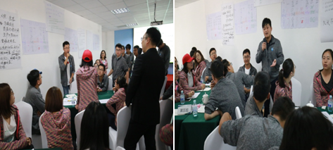 9月22日上午,在專業(yè)培訓(xùn)師的指導(dǎo)下,用貝爾賓團(tuán)隊(duì)角色理論測(cè)試每位員工的團(tuán)隊(duì)角色,結(jié)合該測(cè)試結(jié)果,進(jìn)行了一場(chǎng)充滿參與性、互動(dòng)性、實(shí)戰(zhàn)性、競(jìng)爭(zhēng)性的沙盤模擬訓(xùn)練。新員工們分組抽簽決定各自的所處的地形情況及資源狀況,通過(guò)小組合作產(chǎn)出產(chǎn)品并到統(tǒng)一的市場(chǎng)交易獲得效益,通過(guò)效益的多少等多重指標(biāo)衡量經(jīng)營(yíng)的整體狀況。培訓(xùn)中,小組成員充分地展示出了當(dāng)代年輕人開闊的思維方式,會(huì)場(chǎng)熱鬧紛紛。他們思維活躍、分工有序,在充分分析內(nèi)外形勢(shì)的前提下,有效經(jīng)營(yíng),各小組均獲得了十分可觀的經(jīng)營(yíng)效果,得到了培訓(xùn)團(tuán)隊(duì)的一致好評(píng),最后每個(gè)小組的精彩自我點(diǎn)評(píng)再次將培訓(xùn)推向高潮。會(huì)后大家意猶未盡,午餐時(shí)分依然在探討思路和方法。