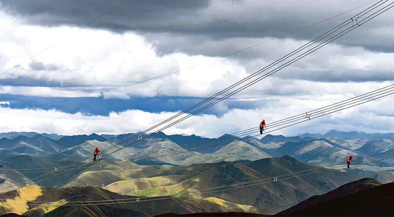 近年來,中央企業(yè)把加強黨的領(lǐng)導(dǎo)和完善公司治理統(tǒng)一起來,在維護國家戰(zhàn)略安全、保障和改善民生等方面更加擔(dān)當(dāng)作為。圖為2021年6月11日,國家電網(wǎng)四川送變電公司黨員先鋒隊員對四川省甘孜州兩河口水電站500千伏送出工程線路進(jìn)行消缺驗收。 國務(wù)院國資委供圖 劉湘釩/攝