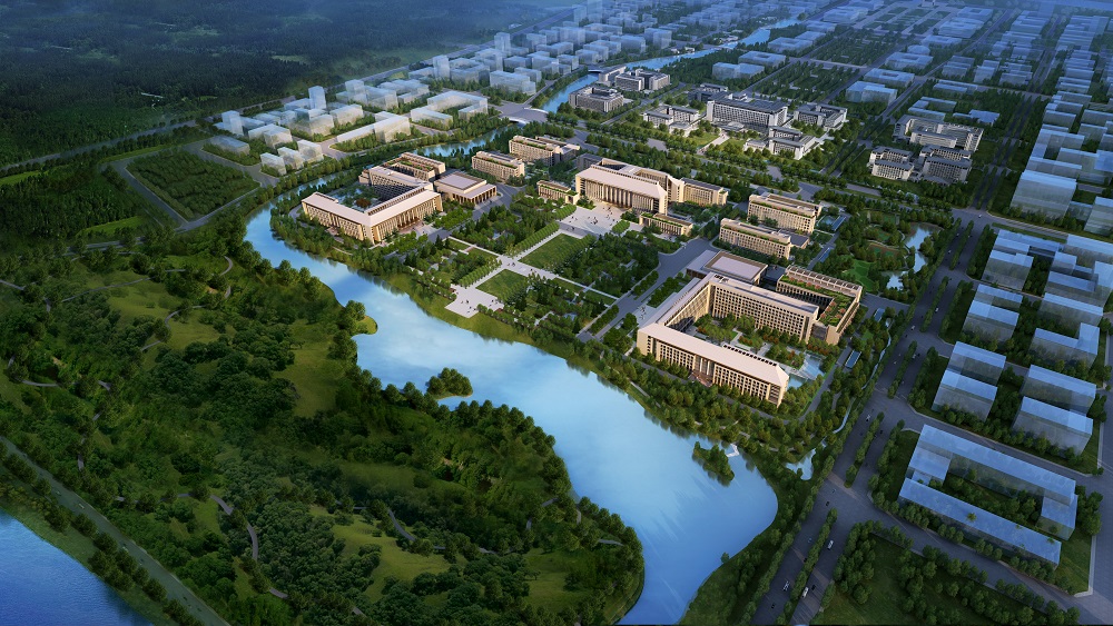 該項目位于北京城市副中心行政辦公區(qū)的核心區(qū)域,在長安街的東延長線上,運潮減河與北運河之間,將成為北京中心城區(qū)功能疏解的重要承接地。行政辦公區(qū)景觀結構為:一條生態(tài)軸貫穿南北,由豐字溝水系和建筑公共綠地組成環(huán)抱行政辦公核心區(qū)的生態(tài)圍合,整體形成全區(qū)山水結構與自然式的園林景觀。