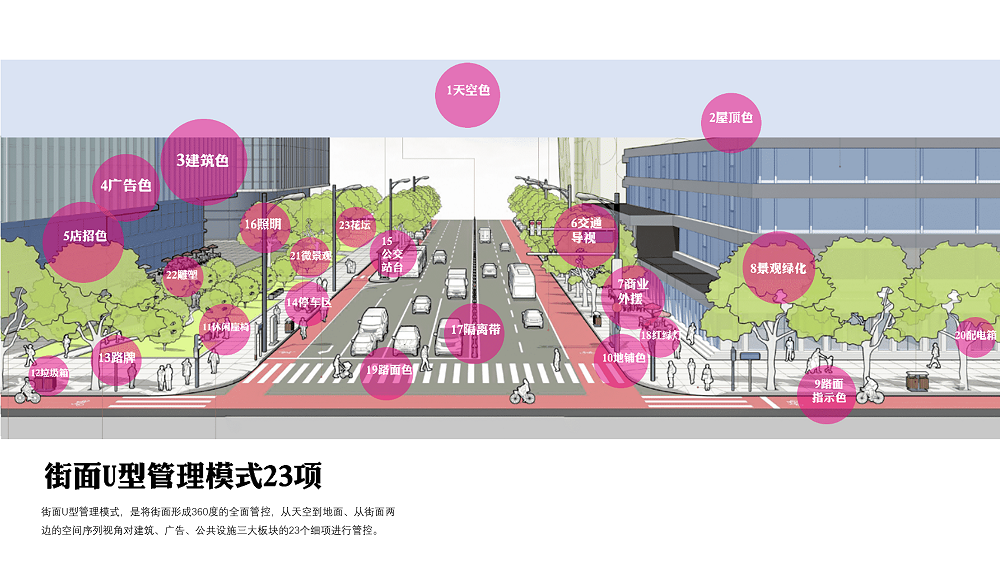 新都區(qū)城市容貌提升,是在公園城市建設(shè)背景下,追溯城市文脈、梳理城市色彩基底、尋找城市主調(diào),以城市色彩為核心,開展的系統(tǒng)性城市形象識別系統(tǒng)提升。創(chuàng)新執(zhí)行的城市色彩、戶外外擺、戶外廣告、戶外導(dǎo)視系統(tǒng),將城市以點、線、面的方式,全系統(tǒng)覆蓋,通過綜合性的治理體系及樣板段示范,建立可實施可落地的管控引導(dǎo)。
