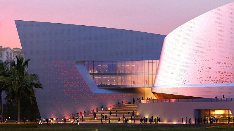 海南省非物質(zhì)文化遺產(chǎn)展示中心項目位于海南省海口市瓊山區(qū),總建筑面積52180平方米,建筑高度42米,是海南省十大重點公共文化工程首批落地實施項目。該項目為瓊劇院、非遺博物館及藝術(shù)中心三大功能合一的文化綜合體,主要設(shè)有大劇場、實驗小劇場、綜合排演廳、黎錦館、非遺陳列館、非遺體驗傳習館、非遺傳承人技藝活態(tài)展示館、藝術(shù)中心等多種類型公共文化設(shè)施。