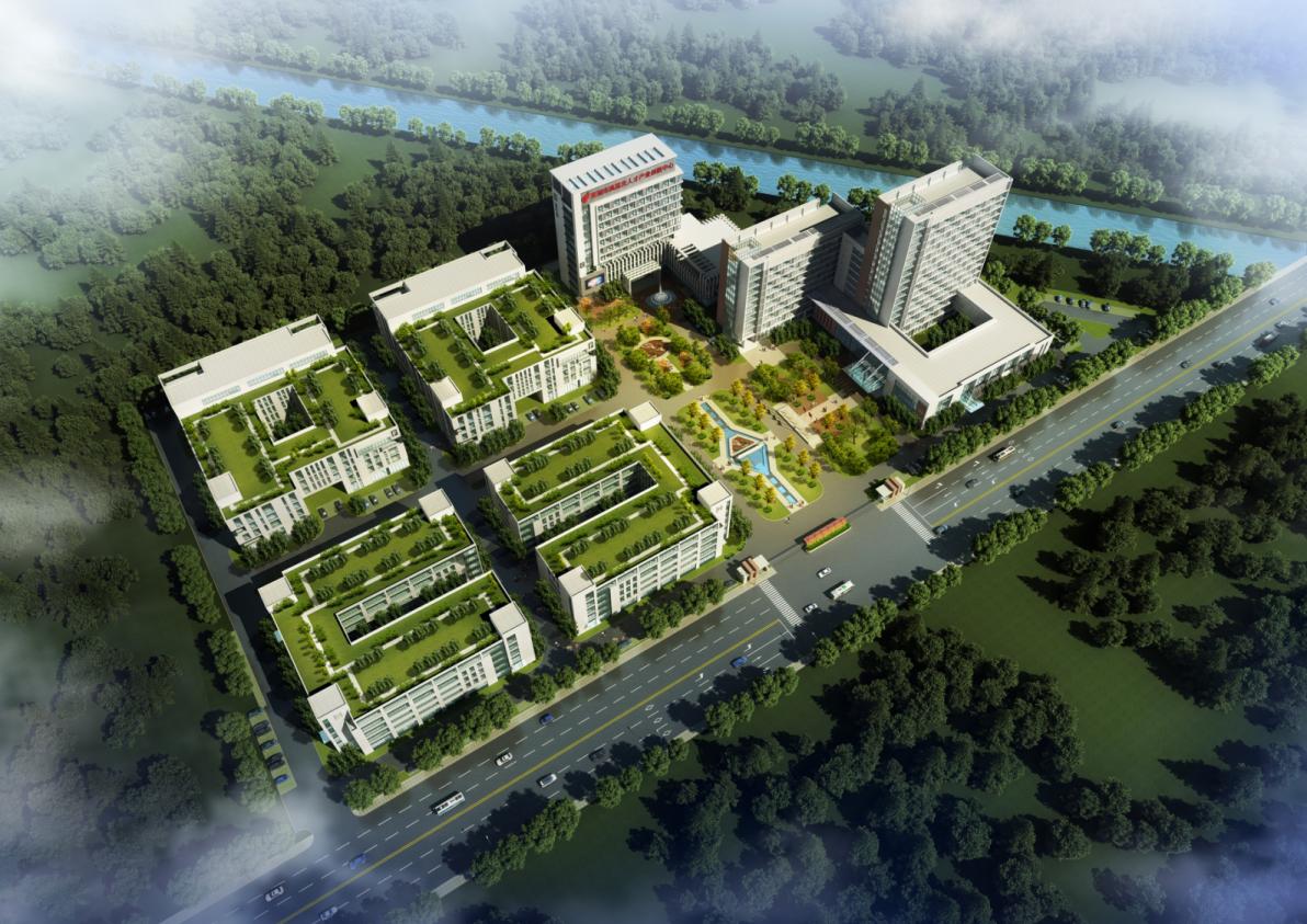 科技園區(qū)主入口設(shè)置在衡山路的中段,研發(fā)辦公和廠房建筑(1#2#3#4#廠房)分設(shè)主入口兩邊,同時形成了主入口廣場:中央廣場布置流通環(huán)繞的景觀水體,暗合高科技產(chǎn)業(yè)“智者近水”的主題。