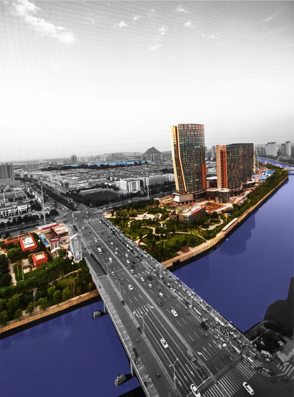 濱河商務(wù)中心的建筑創(chuàng)作,在宏觀尺度上回應(yīng)了城市特定地域的歷史文脈,在中觀尺度上整合融入于基地特有的水-路環(huán)境系統(tǒng)之中,在微觀尺度上創(chuàng)造了獨(dú)特的場(chǎng)所體驗(yàn)。