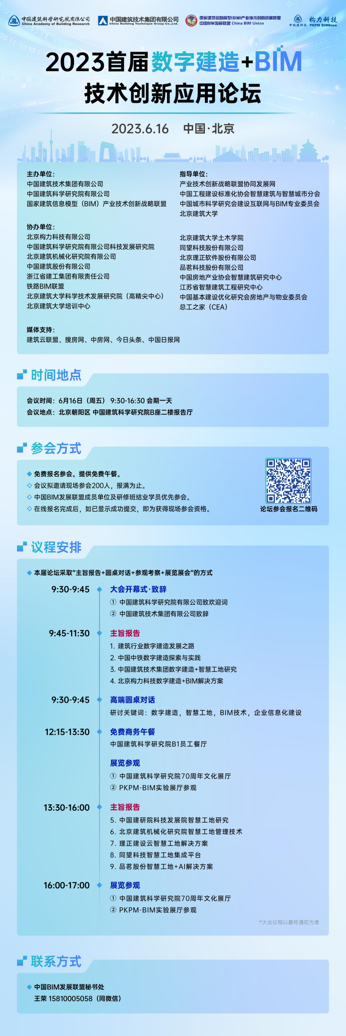 本屆論壇為中國(guó)建研院70周年院慶系列學(xué)術(shù)活動(dòng)之一,論壇以“數(shù)字建造+BIM技術(shù)”為主題,邀請(qǐng)眾多著名專家和學(xué)者參會(huì),期待本論壇有助于工程項(xiàng)目及企業(yè)數(shù)字化轉(zhuǎn)型、提升建筑業(yè)數(shù)字化建造、智慧工地?cái)?shù)字化管理水平,促進(jìn)建筑業(yè)信息化理論思考的活躍與深入。誠(chéng)摯歡迎行業(yè)主管部門領(lǐng)導(dǎo)、學(xué)協(xié)會(huì)負(fù)責(zé)人、相關(guān)企事業(yè)單位負(fù)責(zé)人、技術(shù)負(fù)責(zé)人、總工程師、信息化建設(shè)負(fù)責(zé)人、工程管理和技術(shù)工作者、院校師生等共同參會(huì)。