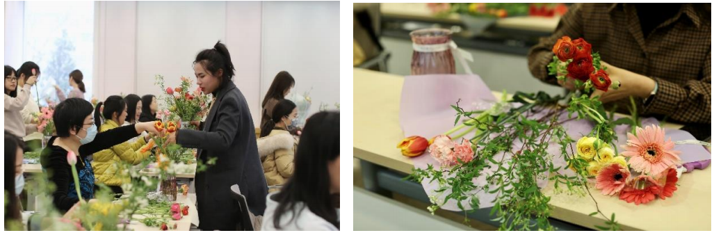 活動(dòng)中,專(zhuān)業(yè)花藝?yán)蠋煘榇蠹抑v授了插花藝術(shù)的基本知識(shí)點(diǎn),包括花材識(shí)別、插花技巧、色彩搭配、養(yǎng)護(hù)保存等重點(diǎn)內(nèi)容,并現(xiàn)場(chǎng)演示了插花技藝。大家邊聽(tīng)邊學(xué)邊動(dòng)手,經(jīng)過(guò)一番修剪配搭,一束束錯(cuò)落有致、別具特色的插畫(huà)作品相繼完成。?