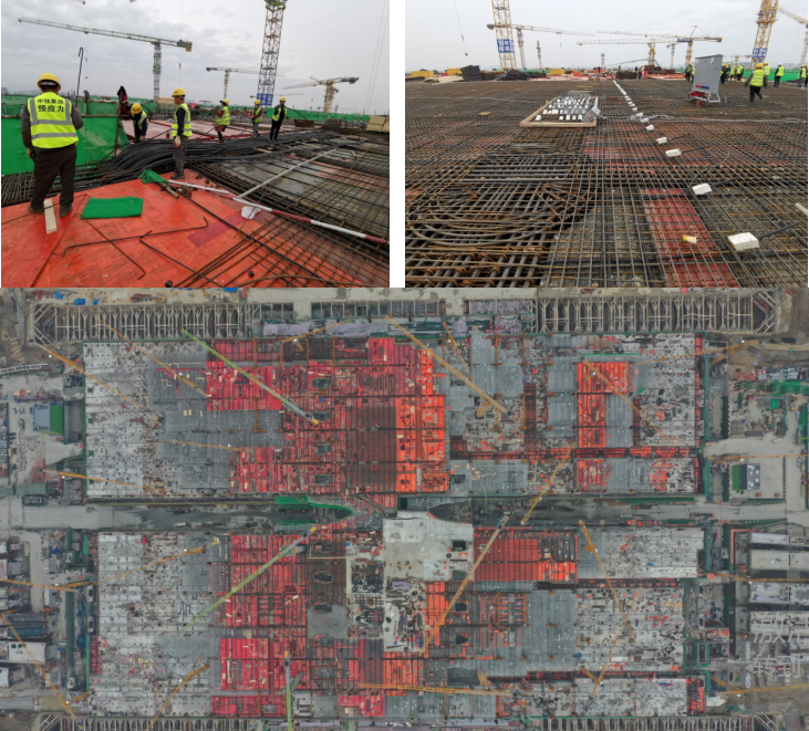高鐵杭州西站是中國特大型鐵路樞紐站房之一,是集鐵路、軌道交通、長途客運、地鐵、公交、出租及社會車輛等多種交通于一體的“大型綜合交通樞紐”,是國內(nèi)第一個付諸實施的“站城融合”特大型高鐵樞紐,是新時代高鐵樞紐站城融合的標桿。工程總建筑面積約74萬平米,其中預應力工程量約9000多噸,是目前國內(nèi)預應力工程量最大的高鐵站房。其結(jié)構(gòu)復雜,承軌層采用預應力箱梁+鋼管柱結(jié)構(gòu)方案;施工難度大,鋼結(jié)構(gòu)、預應力、主體鋼筋等工序同步穿插進行;工期緊,主體結(jié)構(gòu)工期僅10個月。預應力類型多,既采用了傳統(tǒng)有粘結(jié)預應力技術(shù),亦采用了我單位自主研發(fā)的大直徑緩粘結(jié)預應力技術(shù)。