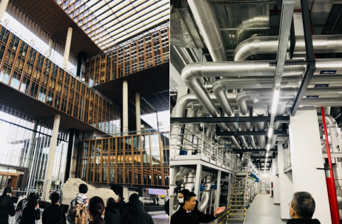 亞洲基礎(chǔ)設(shè)施投資銀行總部是國家“一帶一路”倡議建設(shè)重點(diǎn)工程,也是首個(gè)由我國倡議成立的政府間多邊開發(fā)機(jī)構(gòu)。總部大樓以“魯班鎖”為設(shè)計(jì)理念,高空俯視的“中國結(jié)”寓意著“中國結(jié)·連接世界”,彰顯著我國開放自信的姿態(tài)。設(shè)計(jì)師們在講解員的帶領(lǐng)下先后參觀了公共區(qū)域、辦公區(qū)域和設(shè)備機(jī)房等,全面了解了大樓的建筑特色,80米高的挑空大廳和7個(gè)采光中庭的設(shè)置使所有工作區(qū)享受開闊視野與均衡采光,10處空中花園的置入營造出了兼具藝術(shù)性和實(shí)用性的綠色多元復(fù)合空間,總部大樓與眾不同的設(shè)計(jì)巧思和精妙絕倫的建筑技術(shù)令在場的設(shè)計(jì)師們深感震撼。
