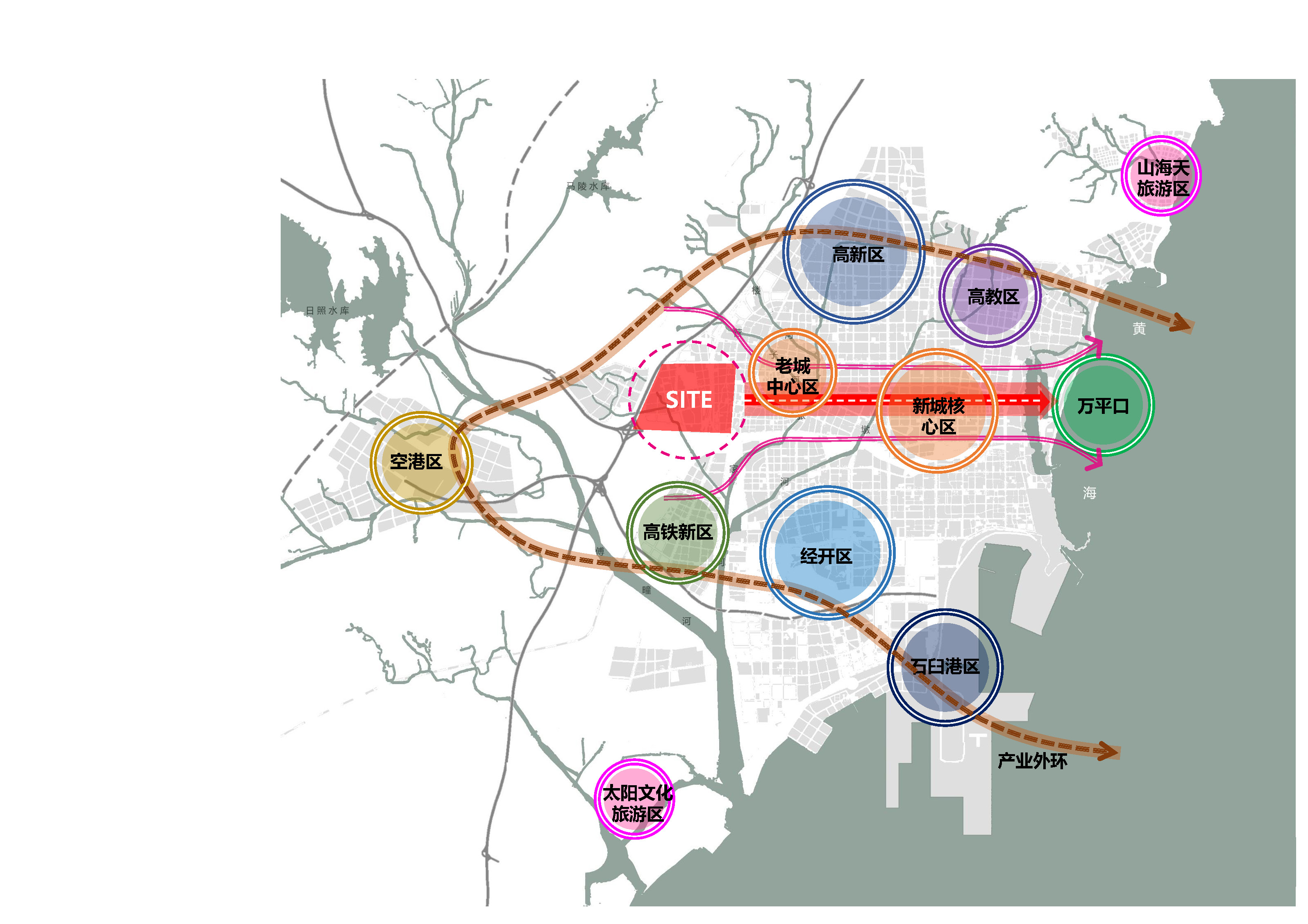 東港城西片區(qū)位于日照西部門戶,東臨老城中心,南臨高鐵片區(qū)、西有空港新城,北有高新區(qū),總面積7.17平方公里。對外通過高速、高鐵、機場與周邊區(qū)域城市緊密聯(lián)系。對內(nèi)山東路、海曲路、迎賓路三條東西向城市主干道與城市中心無縫對接,南北向合村路、丹陽路與北部高新區(qū)、南部經(jīng)開區(qū)、臨港區(qū)一體化聯(lián)通。作為城市西部門戶,工業(yè)衰敗、設(shè)施老化、居住品質(zhì)下降已經(jīng)成為當(dāng)?shù)厝说钠毡橛∠?。在新的發(fā)展時期,城西片區(qū)將承載產(chǎn)城融合的歷史使命,實現(xiàn)城市品質(zhì)化擴容的戰(zhàn)略支點,迎來了實現(xiàn)歷史性跨越發(fā)展的關(guān)鍵機遇期。